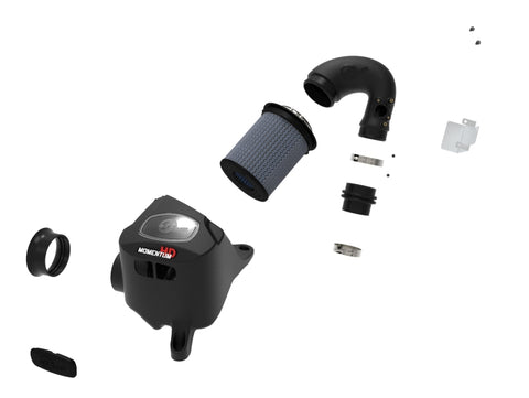 Momentum’s unique filter-to-housing interface was built to feature the largest air filter possible. This 8” tall, pre-oiled 360-degree radial flow air filter features a 4” flange and our pre-oiled Pro 10R media with ten layers of progressively finer cotton gauze media for maximum performance and filtration. Its inverted top and large surface area provide much longer life between maintenance intervals, while reinforced metal provides maximum strength to prevent filter collapse. This media is best suited for off-road applications. The smooth one-piece sealed housing, constructed of heat-resistant cross-linked polyethylene (XLPE), features our patent-pending filter-to-housing interface. Its innovative design minimizes the total number of parts, making for an easy installation. A large, clear sight window allows for hassle-free filter inspection, without having to disassemble your system. The housing connect to the factory air inlet, using no additional hardware, and features an optional auxiliary air inlet that pulls in additional air. A plug is provided to close the auxiliary opening. This system features a high quality, computer-designed, dyno-tuned intake tube to achieve maximum power gains while maintaining a perfect fit. Its XLPE material is heat soak resistant and extremely durable. Stainless-steel T-bolt clamps are included for strength, and a premium bellows silicone coupling allows for ample flexibility. Momentum HD intakes are designed with fewer parts for a fast and easy installation. This product does not require a CARB EO# (Vehicle does not exist in U.S.).