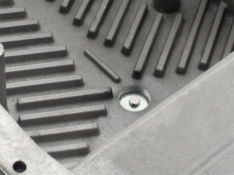 aFe Powers new deep transmission pan brings performance engineering to the protection of your trucks transmission. This transmission pan has additional capacity for 3 to 4 more quarts over stock at the factory line, a magnetic drain plug and a 1/8" NPT port for your temperature sensor. Built-in internal and external fins transfer heat from the fluid to the outside air for maximum cooling. This transmission pan is constructed out of durable die-cast A380 aluminum with reinforced ribs and a wrinkle black powder-coating for maximum strength and styling.