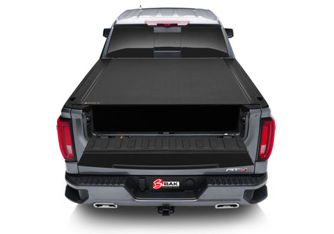 The new BAK Revolver X4s is the third generation of America's #1 selling premium hard rolling cover, now with exciting new features. The Revolver X4s is a bed cover engineered for real-world durability. With NEW matte black heavy-duty aluminum slats wrapped in industrial-grade vinyl and a matte black finish, top-to-bottom, the X4s delivers a modern, stylish appearance. With the cover closed, the patented rotational locking system secures the X4s for the entire length of the bed, on both sides, providing unrivaled strength and security. When open, the X4s cover rolls forward smoothly, storing securely with a durable strap and buckle system. This design gives you full access to your truck bed and does not interfere with your rear view mirror sightlines or block the third brake light. With revised premium black aluminum slats, newly designed side seals, and finished rear corner caps, the Revolver X4s bed cover achieves a new level of refinement for your truck. Best of all, it's backed by an impressive 5-year warranty. Expect More.