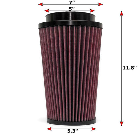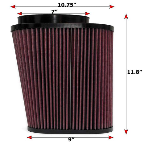 Easy to install replacement filter (oiled or dry). Increased airflow, excellent filtration and longer service life. Banks Ram-Air filter is a high-flow air-cleaner element that decreases intake restriction and sends more cool, dense ram-air into your engine. Even wet or dirty, Banks Ram-Air filters outperform conventional ones, because the multi-layer design traps moisture, dust, and debris on the oiled, outer surface, allowing air to move through with ease.