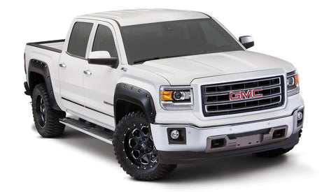 With their recessed stainless steel bolts and massive presence, Pocket Style(R) Fender Flares are a Bushwacker original and an off-road icon. They're custom-designed for your Nissan Titan to complement oversized tires and high-clearance lift kits. You can mount them right out of the box, with their tough, OEM-style matte black finish — they're UV protected so they wont chalk. Or, paint them to match or accent the body color, for a factory-custom look . Pocket Style(R) Fender Flares are made in the USA from our thick, warp-resistant Dura-Flex(R) 2000 material, tailor-made for added durability and flexibility on the trail. Despite their hard-core bolt-on styling, Pocket Style(R) Fender Flares install easily, with no drilling required. When you need maximum tire coverage with minimum time and effort, its in the pocket. Pocket Style(R) Fender Flares from Bushwacker.