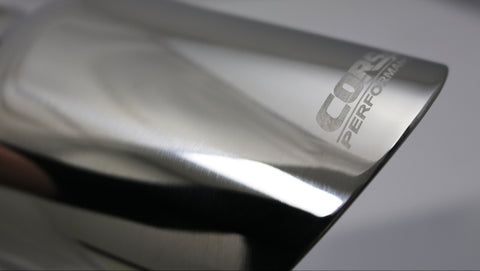 CORSA Performance Pro-Series tips are dual-walled stainless steel. The dual-wall is designed to protect against heat distortion and maintain visual appeal. Each tip is adorned with high-definition, precision laser engraving that provides unmatched detail.