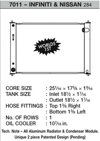 Get it all from CSF! With over 3000 models to chose from, CSF's coverage is second to none.When you choose CSF, you are dealing directly with the manufacturer, not a broker or an importer. CSF's factories are ISO certified, and are OE suppliers to many US, German and Asian manufacturers. When you purchase a CSF product, you can be rest assured that it has been manufactured on the same production lines with the same high quality standards as their OE customers. Every single radiator is subject to rigorous testing procedures such as Hydrostatic Testing, Vacuum decaying and life cycle testing, and is designed to always be a "drop-in fit".
