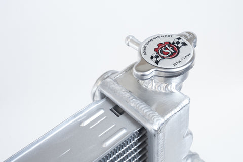 The 2-Row 42mm aluminum core not only increases the fluid capacity of the radiator, but also improves the cores ability to dissipate heat. CSF's Exclusive B-Tube Technology increases the heat transfer by approximately 15% over regular oval welded tubes. In addition, the super-efficient multi-louvered fins maximize airflow through the core for the best possible performance. End tanks are made from high grade aluminum and TIG welded to the core for extra strength. In contrast, the OEM crimped onto plastic end tank design is much weaker and creates a weak point where failure is more likely. Because the CSF radiator is designed as a true plug-and-play drop-in fit application, installation requires absolutely no modifications, trimming, or cutting. CSF even includes pre-cut double sided adhesive foam strips to help seal the fan shroud against the radiator. This improves airflow efficiency off the fan. Additionally, the radiator features a built-in transmission oil cooler. The transmission cooler is a heavy-duty high-performance 5 plate design that connects to the OEM hoses. The upgraded built in cooler is great dealing with the added heat and stress from towing, low gear crawling, and vehicles equipped with oversized tires. While many understand the impacts of oversized tires, it is always good to provide extra incite. By increasing the diameter of your tires, you are reducing the effective gear ratio. This means the engine and transmission have to work harder to move the tires. Obviously this will end up generating excess heat, but the CSF radiator is designed to handle it.