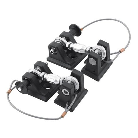 Ever drive down the road and notice a little flutter in your Jeep's hood? Have you replaced the stock, rubber hood hold downs that came with your Jeep? DV8's race-inspired hood hold downs feature a billet aluminum turnbuckle and stainless steel heim joints. The quick-release push pin provides easy access to opening your hood and won't be lost thanks to the attached, stainless steel lanyard. Also available in a lockable version to help prevent any under-hood theft or tampering. NOTE: May not work with all aftermarket hoods, fenders and fender flairs.