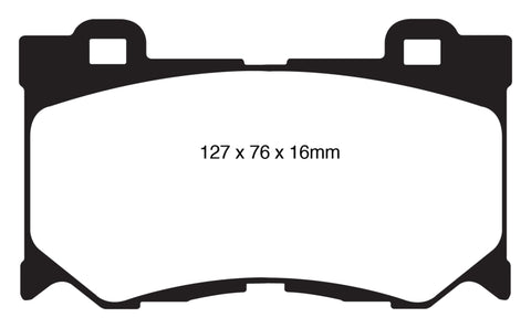 EBC Yellowstuff is an aramid fibre based brake compound with high brake effect form cold and is possibly one of the first ever compounds that can be used for STREET AND TRACK DRIVING. These pads do not require warm up but do get even stronger under the heat of hard driving. These are not a low dust pad and if your desire is for a low dust premium street use pad, you should consider EBC Redstuff.When considering full race use, Yellowstuff has been a strong favourite, having been used for two years in the Swedish Camaro Cup and at numerous other race events where a stock caliper system is fitted.It is also the choice of 90-percent of the Mazda MX5 Miata competitors in the UK race series and has an unblemished record as rotor friendly track pad for vehicles up to 2000 lbs weight or 200 BHP.In the USA the SCCA and NASA drivershave been testing Yellowstuff with feedback and good reports POURING in from a 543 test driver major market proving event with these groups. Read that figure again 543 test drivers.There is no guesswork here.