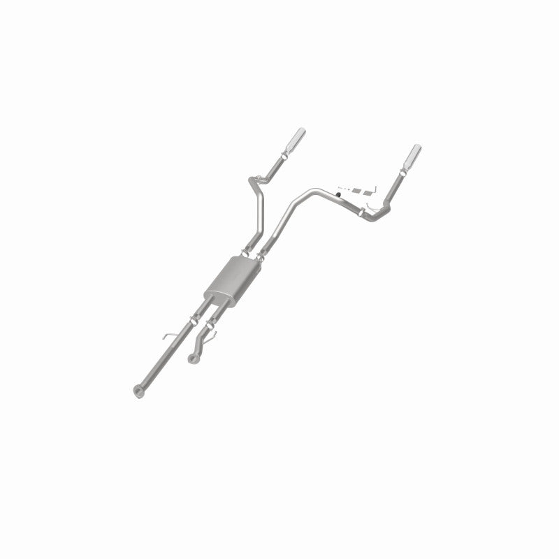 The MagnaFlow Toyota Tundra Street Series 15305 brings out the personality of your 4.6L, 5.7L 2014-2021 Toyota Tundra with our signature resonant, powerful engine tone and dyno-proven performance. Thanks to its fast-flowing, mandrel bent 2.5in. main piping and 1 Straight-Through mufflers ending in a Dual Split Rear exit with 3.5in. Polished Clamp-On-Single Wall-Angle Cut-Rolled Edge tips, this Toyota Tundra exhaust kit has the performance chops to match its sporty sound and appearance. Upgrade your ride to the next level with an exhaust that has the pipes to put other Toyota Tundra’s to shame. With this system your vehicle will be producing Agressive exterior and Moderate interior sound levels while leaving other cars and trucks feeling envious at every stoplight. Exhaust kit 15305 features a cat-back layout that replaces your ride’s stock exhaust components from near the catalytic converter on back. Extensive 3D scanning during development has resulted in a direct-fit design that you can easily install yourself. 15305 is produced using CNC precision robotic manufacturing techniques and is backed by MagnaFlow’s 1-year limited finish warranty and limited lifetime construction warranty.