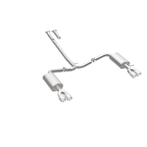 The MagnaFlow 2011-2015 Kia Optima Street Series Cat-Back Performance Exhaust System 19237 brings out the personality of your 2.0L, 2.4L 2011-2015 Kia Optima with our signature resonant, powerful engine tone and dyno-proven performance. Thanks to its fast-flowing, mandrel bent 2.5in. main piping and 2 Straight-Through mufflers ending in a Quad Split Rear exit with 3.5in. Polished Welded-On Double Wall Angle Cut Folded Edge tips, this Kia Optima exhaust kit has the performance chops to match its sporty sound and appearance. Upgrade your ride to the next level with an exhaust that has the pipes to put other Kia Optima's to shame. With this system your vehicle will be producing Moderate exterior and Mild interior sound levels while leaving other cars and trucks feeling envious at every stoplight. Exhaust kit 19237 features a cat-back layout that replaces your ride's stock exhaust components from near the catalytic converter on back. Extensive 3D scanning during development has resulted in a direct-fit design that you can easily install yourself. 19237 is produced using CNC precision robotic manufacturing techniques and is backed by MagnaFlow's 1-year limited finish warranty and limited lifetime construction warranty.