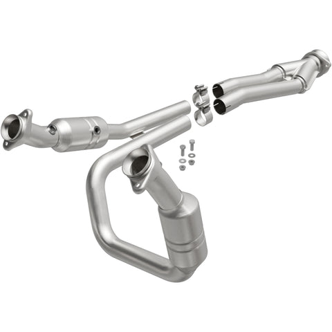 Keep the check engine light off with MagnaFlow OEM Grade Federal/EPA Compliant Direct-Fit Catalytic Converter 52436. With features including free-flowing mandrel-bent tubing and highly corrosion resistant stainless steel construction, easily install this spun body converter yourself using the proper tools, no cutting or welding required. MagnaFlow's state-of-the-art metrology department uses the latest 3D scanning systems during research and development, so you can be confident that your new part will fit and function like the original equipment. By replicating the OE spun body design, the single laser fusion weld greatly reduces the possibility of a leak, and our compact, low-mass design also allows for greater thermal efficiency. Designed to fit the 2015-2019 Ford Transit-250, 2015-2019 Ford Transit-350, and more, this direct-fit catalytic converter also interchanges with OE parts GK4Z-5F250-F and CK4Z-5E212-G, among others. Hardware is included to eliminate the hassle of working with corroded factory parts. This replacement part is designed to meet or exceed Federal emissions requirements set forth by the EPA, complying with legal standards for OBDII Federally registered vehicles with California or Federal/EPA Emission systems.