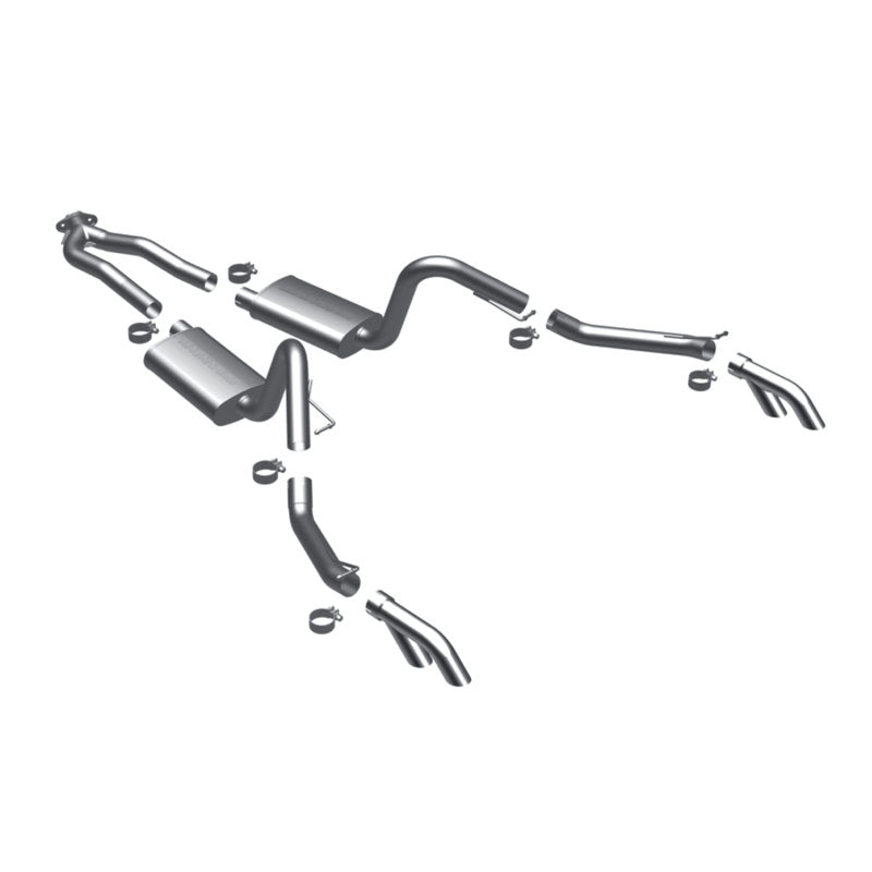 The MagnaFlow Pontiac Firebird Street Series 16830 brings out the personality of your 4.9L, 5.0L, 5.7L, 6.6L 1975-1981 Pontiac Firebird with our signature resonant, powerful engine tone and dyno-proven performance. Thanks to its fast-flowing, mandrel bent 2.5in. main piping and 2 Straight-Through mufflers ending in a Dual Split Rear exit with 2.25in. Polished Clamp-On-Single Wall-Turndown-Cut Edge tips, this Pontiac Firebird exhaust kit has the performance chops to match its sporty sound and appearance. Upgrade your ride to the next level with an exhaust that has the pipes to put other Pontiac Firebird’s to shame. With this system your vehicle will be producing Moderate exterior and Mild interior sound levels while leaving other cars and trucks feeling envious at every stoplight. Exhaust kit 16830 features a cat-back layout that replaces your ride’s stock exhaust components from near the catalytic converter on back. Extensive 3D scanning during development has resulted in a direct-fit design that you can easily install yourself. 16830 is produced using CNC precision robotic manufacturing techniques and is backed by MagnaFlow’s 1-year limited finish warranty and limited lifetime construction warranty.