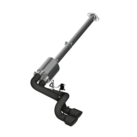 Our Black Series performance exhaust systems offer a true murdered-out style without compromising on quality and performance. With fully sealed seams to resist rust you can count on this system to really hold up. The black coat finish is specifically formulated to withstand the extreme heat and abrasive conditions an exhaust system is exposed to. Built to Perform - MBRP's performance exhaust systems are built to perform. Designed to maximize exhaust flow and minimize exhaust temperatures your truck will use less gas, last longer and perform better. Every system we sell has been built to the most exacting standards in the industry. Dyno Proven - Your MBRP performance gas exhaust system has undergone countless hours on our in-house Mustang 1100 AWD-SE Chassis Dynomometer, hundreds of miles on road and track and numerous tweaks and modifications to get the most out of your truck. From the vehicle specific muffler design to the fully mandrel bent tubing to minimal bend degree angles, your MBRP performance system gets exhaust out fast. An MBRP performance exhaust system is the starting point to getting the most from cold air intakes, programmers, modules and downloaders. Easy Installation - MBRP systems are as much fun to install as to drive with on your truck. Bolt-on, no weld design makes installation a no hassle one and a half to two hour project. Everything is direct fit to the OEM hangers and you get all the clamps and parts you will need. Sound And Style - Performance is one thing but at MBRP we believe that appearance and sound are just as important. Every MBRP performance exhaust system has been specifically tuned to get the optimal sound from your pickup. With our stamped logo on the tip and our unmistakable styling, there's no question that you have the hottest performance exhaust on the road - MBRP.