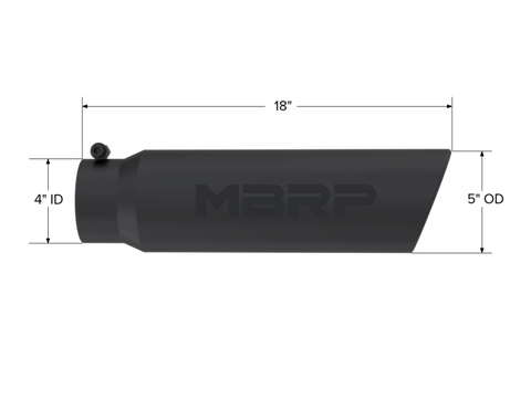MBRP Universal 5in OD Angled Rolled End 4in Inlet 18in Lgth Black Finish Exhaust Tip