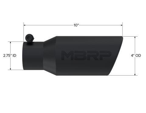 MBRP Universal Angled Rolled End Tip 4in OD / 2-3/4in Inlet / 10in Length - Black