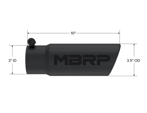 MBRP Universal Tip 3-1/2in O.D. Angled Rolled End - 3in ID Inlet 10in Length - Black