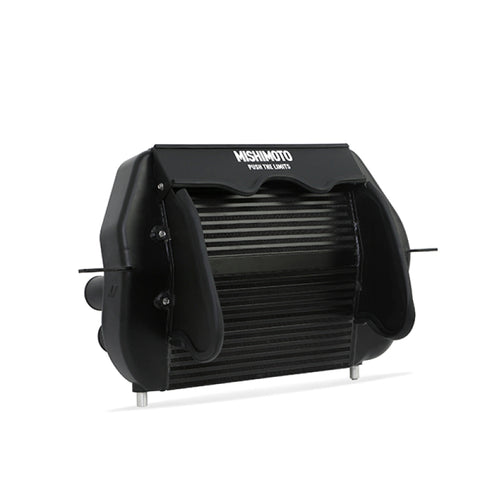Cool down those charge air temperatures with the Mishimoto direct-fit performance intercooler kit for the 2011-2014 Ford F-150 EcoBoost. The small, factory intercooler sits in the bottom part of spacious, but unconventionally shaped cavity behind the front bumper -- There's a lot of wasted space there that could be used for cooling improvements! That's why the Mishimoto intercooler has been cleverly engineered to feature a unique angled design to take full advantage of the space for maximum performance, boasting an 88-percent increase in core size, a 66-percent increase in internal core volume, and a 40-percent increase in external fin surface area. Our all-aluminum, TIG-welded core is a tough and durable as the rest of your truck, and incorporates an NPT-threaded bung on the bottom to help deal with the condensation that the 2011-2014 F-150 is notorious for. Also included is a CNC bypass bung for 2011-2012 trucks, and a set of air diversion plates to guide ambient air directly through the core for the best performance possible. Speaking of performance, this intercooler has been dyno-tested for maximum gains using both the stock tune and a specialized tune to optimize the ECU to the improved cooling performance. The Mishimoto intercooler lowers intake temperatures by 50 F (10 C) compared to the factory part. Available in your choice of Stealth Black or Sleek Silver, every 2011-2014 F-150 EcoBoost intercooler fits with both the stock intercooler pipes and the upcoming Mishimoto performance hot and cold pipes, and each intercooler ships with the Mishimoto lifetime warranty.