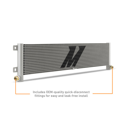 There's no greater enemy for a transmission than heat. Whether your 2019+ RAM 6.7L Cummins is a dedicated tow vehicle, hardworking fleet truck, or a daily driver with a liking for the dragstrip, you need to ensure that your transmission runs cool. Luckily, Mishimoto has developed a direct-fit transmission cooler to do just that.--Our 2019+ RAM 6.7L Cummins transmission cooler utilizes a tube-and-fin core with internal fins to balance flow with efficient cooling. Our transmission cooler reduces restriction over stock, while adding cooling performance. With a massive 64 percent thicker core and an additional 3 rows of fins, this trans cooler is a huge improvement over the stock unit. To make even better use of that enlarged core, the Mishimoto transmission cooler utilizes fins within the tubes to not only add more cooling surface area, but also ensure more of the fluid contacts the tube, leading to better cooling efficiency. All these improvements translate to lower inlet temperatures over stock for a cooler transmission when you need it most.--Installation of the Mishimoto 2019+ RAM 6.7L Cummins transmission cooler requires no cutting or other modifications and, thanks to the bolt-on mounting tabs, your radiator and A/C condenser can stay in place, reducing the time and cost of installation. Like all Mishimoto products, this transmission cooler is backed up by our Lifetime Warranty with Accident Protection for worry free cooling as long as you own it.