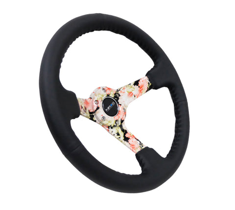 NRG Reinforced Steering Wheel (350mm / 3in. Deep) Blk Leather Floral Dipped w/ Blk Baseball Stitch