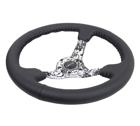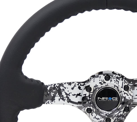 NRG Reinforced Steering Wheel (350mm / 3in. Deep) Blk Leather w/Hydrodipped Digi-Camo Spokes