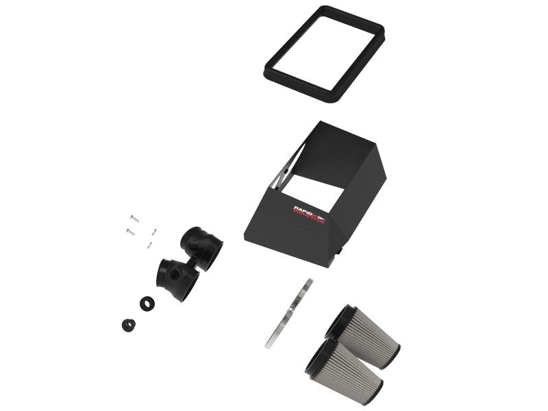 This filter features three layers of oil-free synthetic media and requires no oil during maintenance to provide maximum convenience. Its progressive layering provides great filtration efficiency and dust holding capacity. This media is best suited for street and light off-road use. Pro DRY S filters are easily recharged with aFe's POWER CLEANER. aFe developed this sturdy 18 gauge steel wrinkle-black powder-coated heat shield to snap onto the top of the lower half of the factory airbox to provide a hassle-free installation utilizing factory mounting locations. This system features a dual inlet, high quality, computer-designed, dyno-tuned intake tube to achieve maximum power gains while maintaining a perfect fit. Its XLPE material is heat soak resistant and extremely durable. This intake replaces the factory upper intake box. All hardware and components are included for a hassle-free installation. This kit utilizes high quality stainless steel clamps and hardware.