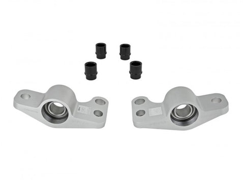 Skunk2 Racing is proud to announce the release of its Spherical Bearing Compliance Bracket for the front lower control arms on the '96-'00 Civic. Skunk2 Racing's Billet Compliance Bracket w/ Spherical Bearings are direct replacements for your soft and worn OEM units that compromise geometry for comfort. Our Billet Brackets and Spherical Bearings eliminate deflection and increases the lower control arms freedom of motion on multiple axes simultaneously. Spherical Bearing Billet Compliance Brackets offer the hardcore racer and discerning enthusiast, the very best of the best. Accurate suspension geometry is maintained under the most aggressive driving conditions using high load steel spherical bearings that are retained in the billet housing with removable Spirolox, giving you the ability to service or replace when needed. Skunk2 Racing Billet Compliance Brackets w/ Spherical Bearings are recommended for no-nonsense track cars or extreme performance streetcars. For maximum suspension performance, Skunk2 Billet Compliance Brackets w/ Spherical Bearings are best complemented with Skunk2 Spherical Bearing Front Lower Control Arms, Pro Series Camber Kits, Coilovers, and Strut Tower Bars.